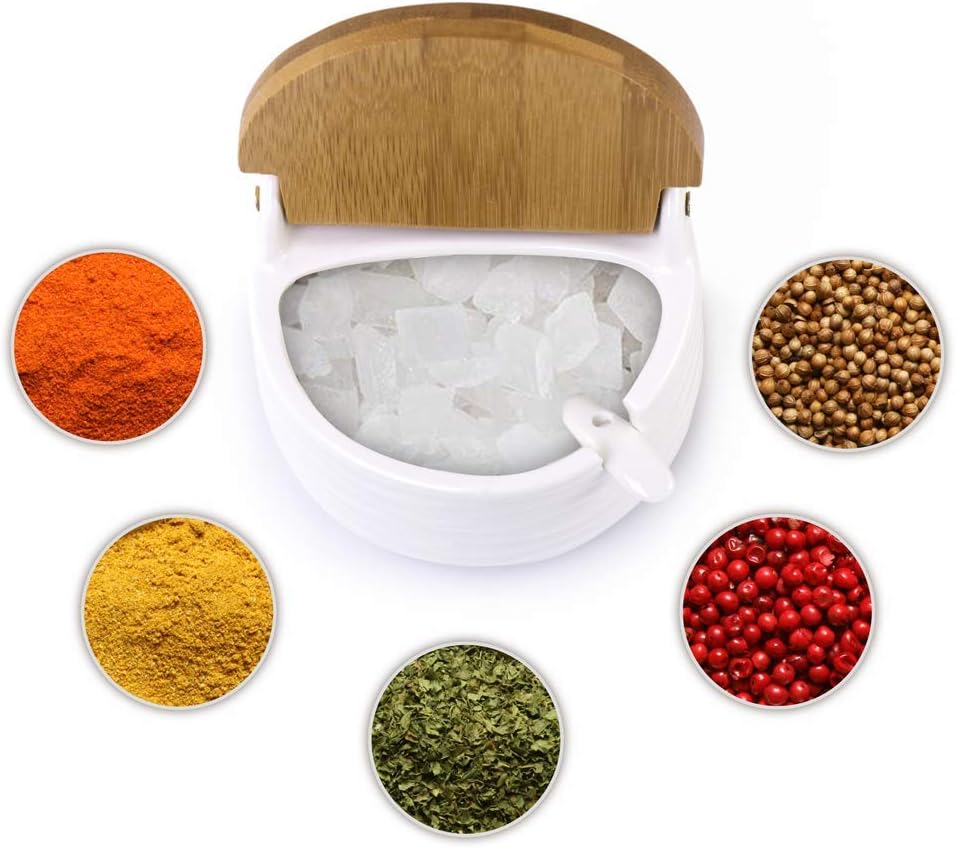 CERAMIC SPICE JARS - Made of food safety grade ceramic, natural eco-friendly bamboo, easy to clean. Take it home, and LUCKY GODDNESS's Ceramic Bowl will lead you and your families to a healthy diet.